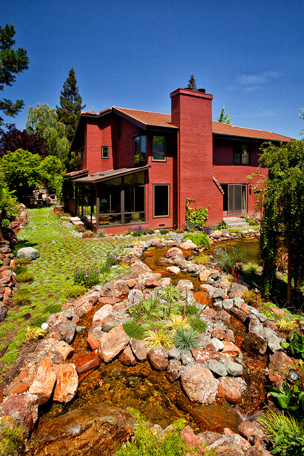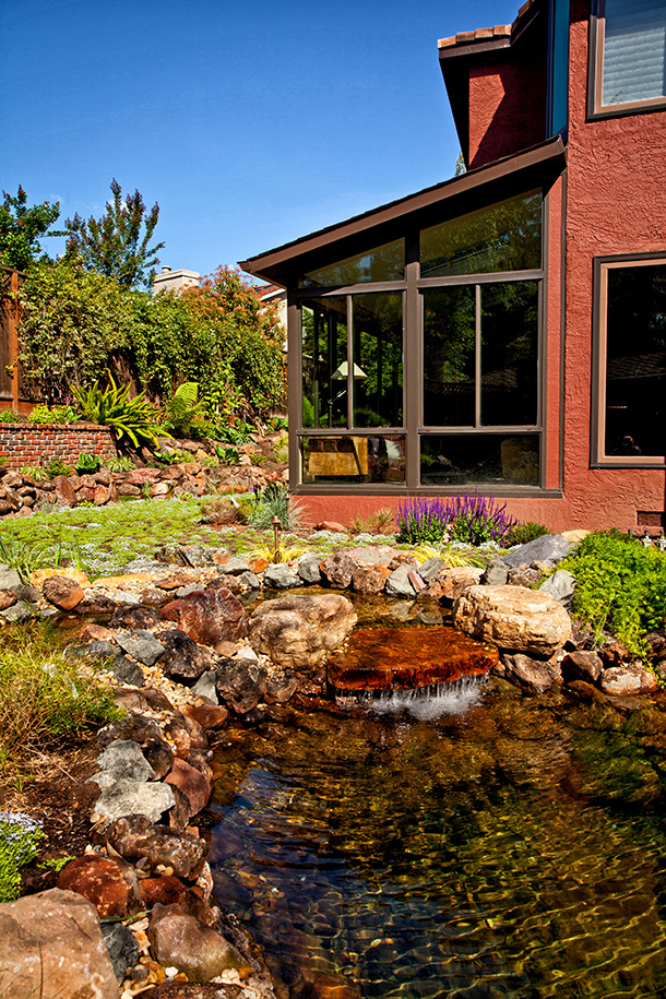 The whole landscape was viewable from a remodeled sunroom at the back of the house and gave the owner the feeling of bringing the outside into the house.